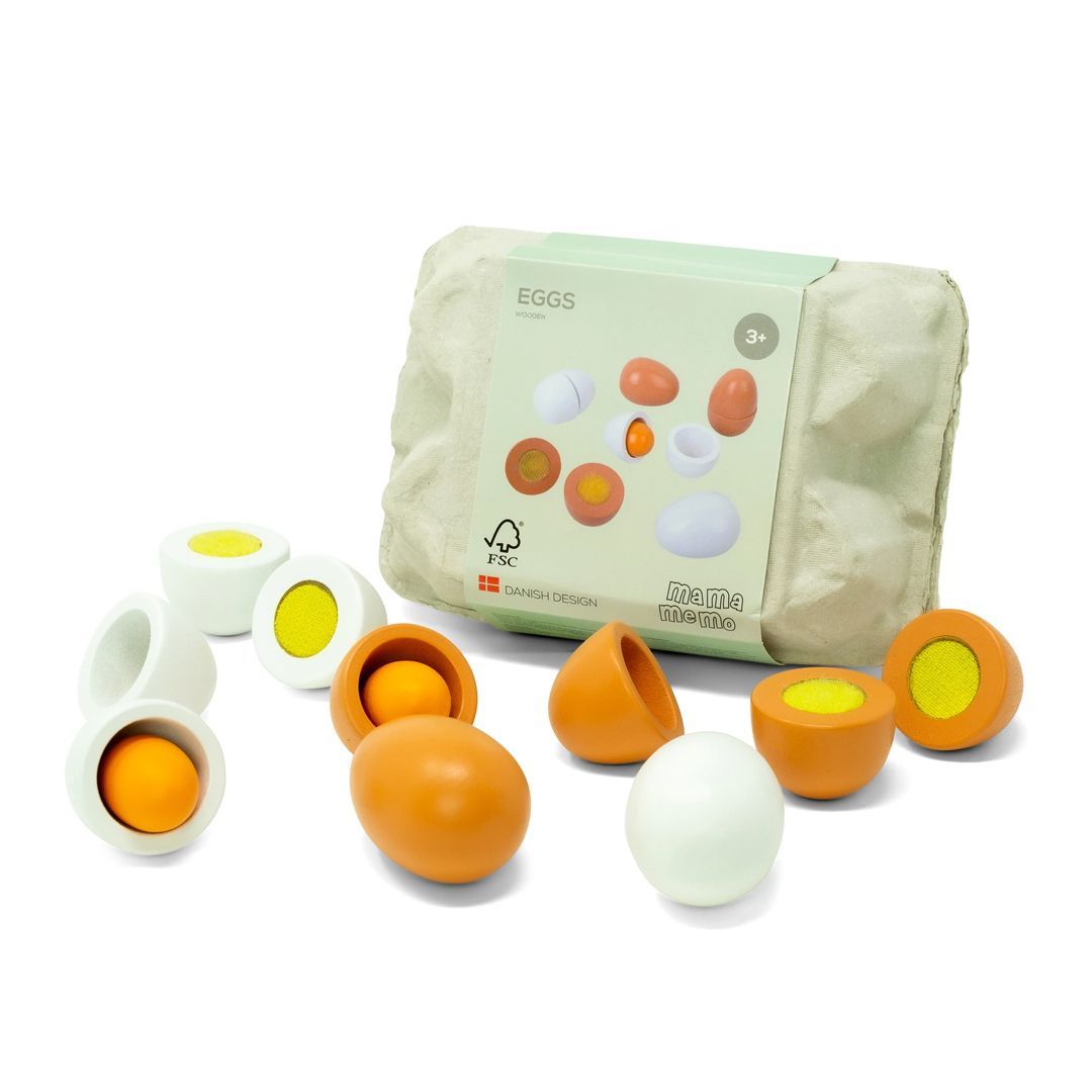 Æggebakke med æg i træ. Mange timers leg med mad og rolleleg.