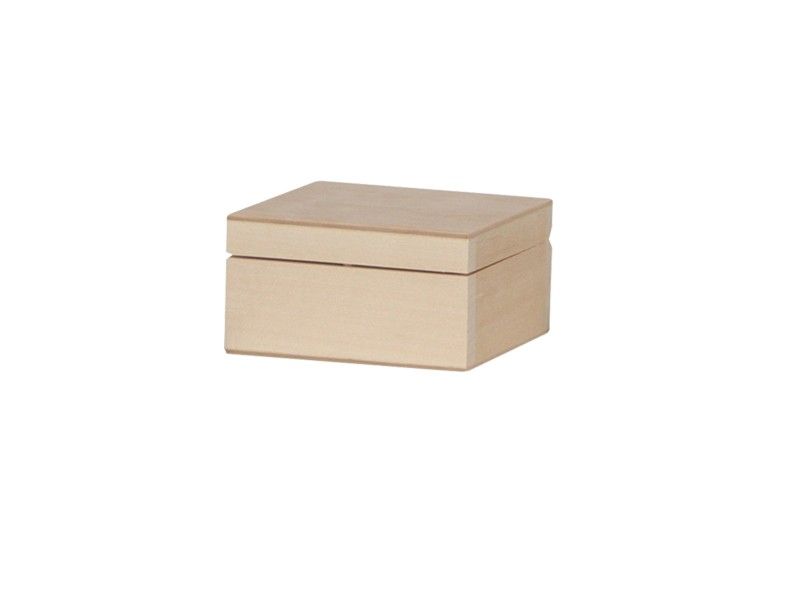 B16 L16 H7 cm. Smart æske i ubehandlet finér til opbevaring. Låget kan slås op.