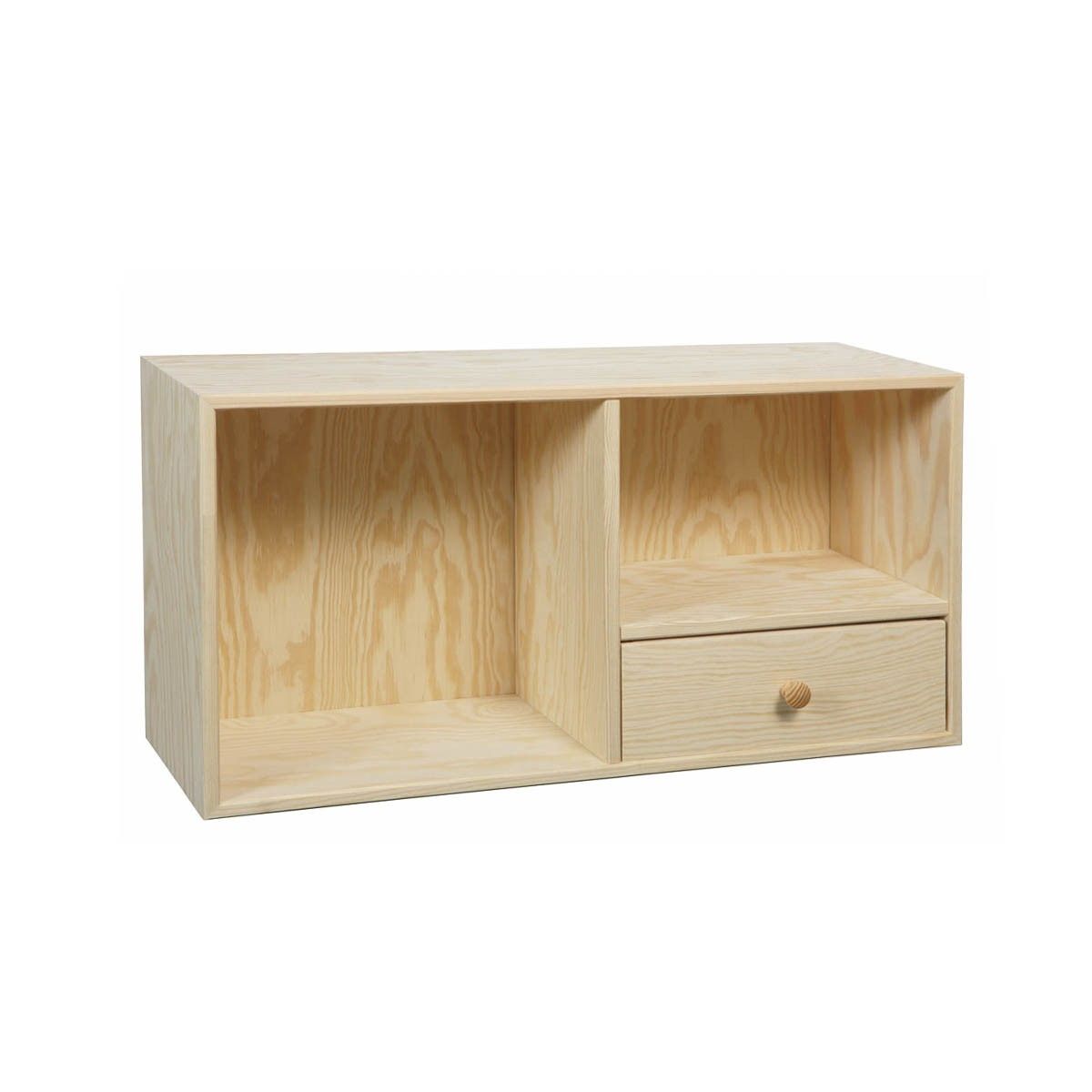 Bogkasse i fyr 30x60x19 cm, 1 skuffe og 2 rum
