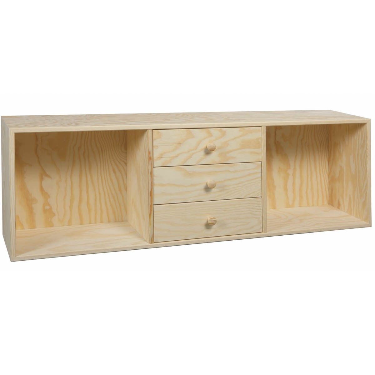Bogkasse i fyr 30x90x19 cm, 3 skuffer og 2 rum