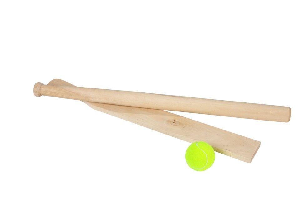 Sæt med et rundt bat og et fladt bat samt en bold. Kommer i pose, så det kan holdes samlet.