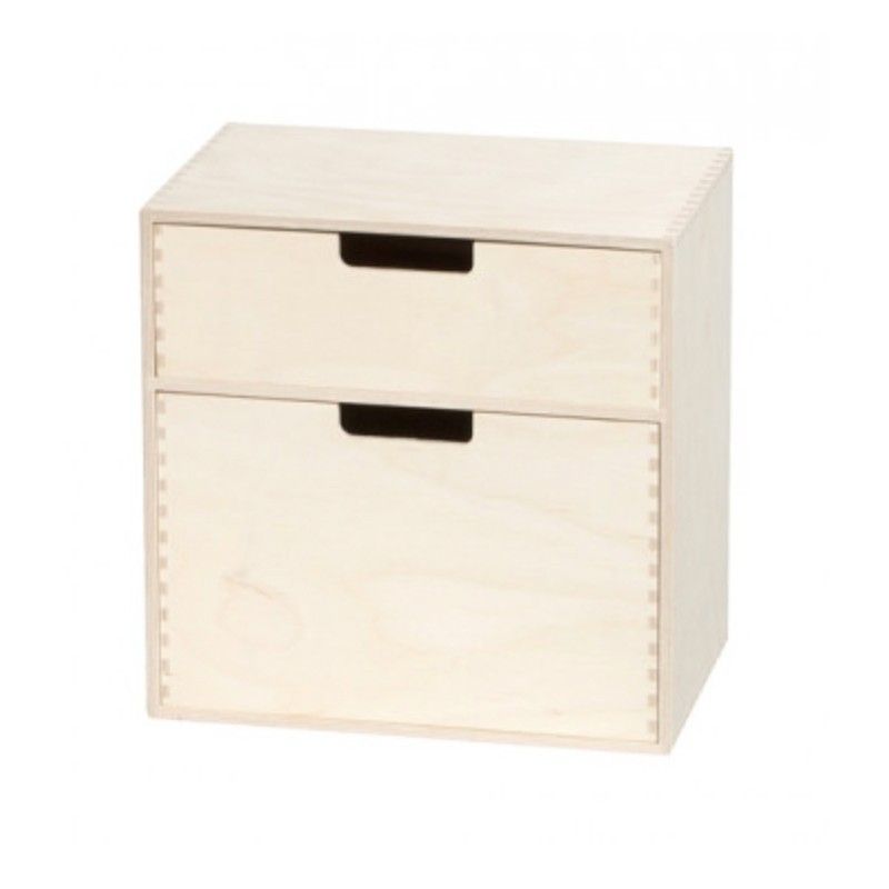 B31 H31 D21 cm. Smart kasse med 2 opbevaringsrum i ubehandlet birkekrydsfinér.