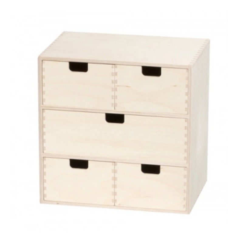 B31 H31 D21 cm. Smart kasse med 5 opbevaringsrum i ubehandlet birkekrydsfinér.