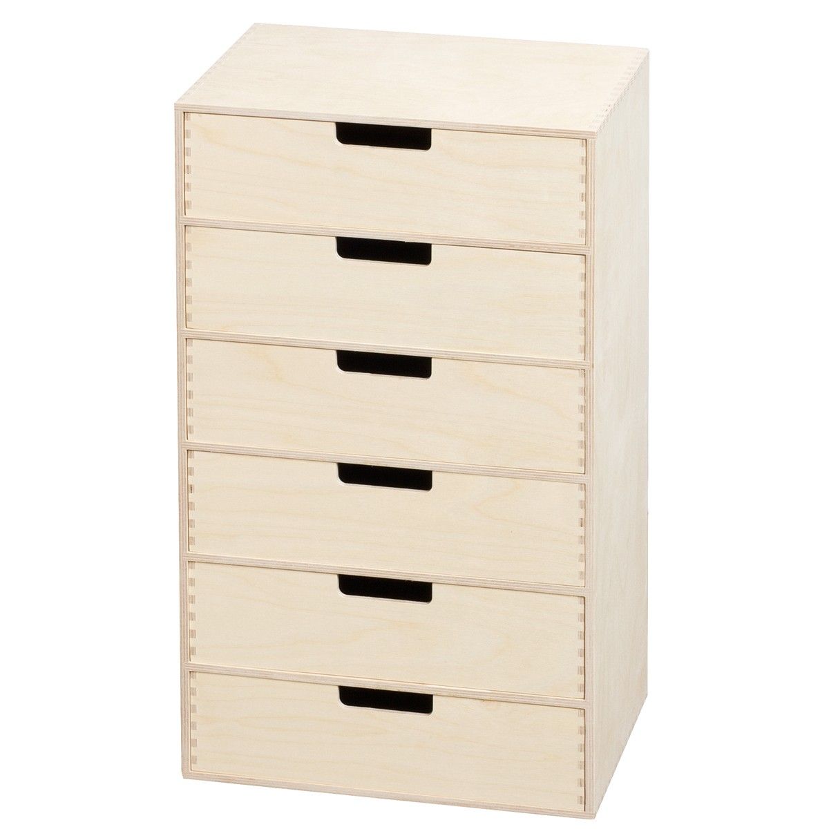 B35 H61 D25 cm. Smart kasse med 6 opbevaringsrum i ubehandlet birkekrydsfinér.