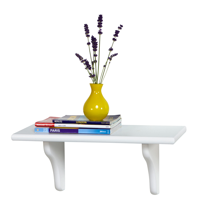L40 D15 cm. Hylde i hvidlakeret MDF. inkl. 2 hyldeknægte og beslag. Max 10 kg