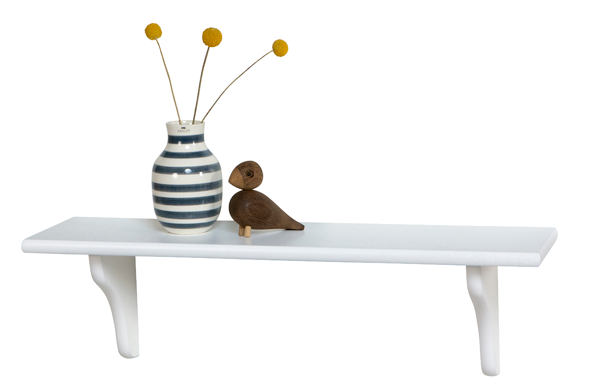 L60 D15 cm. Hylde i hvidlakeret MDF inkl. 2 hyldeknægte og beslag. Max 10 kg.