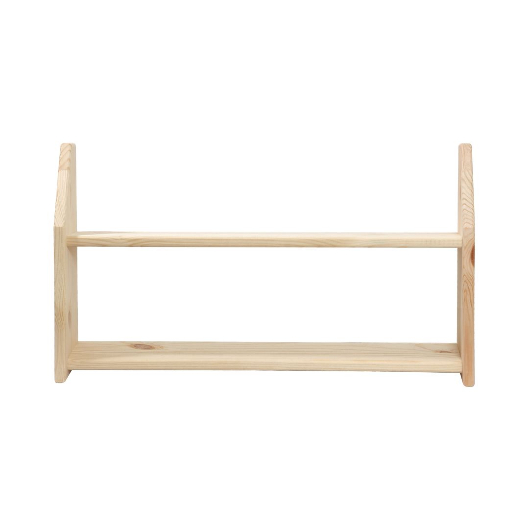B53 H33 D9 cm. 2 rækker. Produktet er produceret i ubehandlet fyr. 14 cm. mellem hylderne.