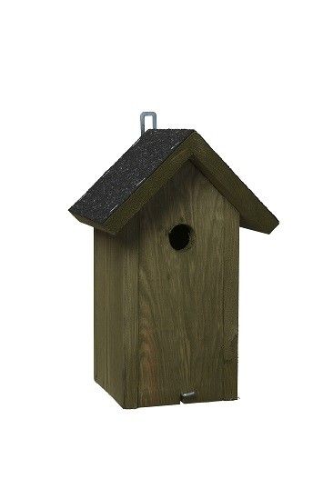 L15 D18 H27 cm. Mejsekasse i bejset fyr med tagpaptag. 28 mm hulstørrelse.