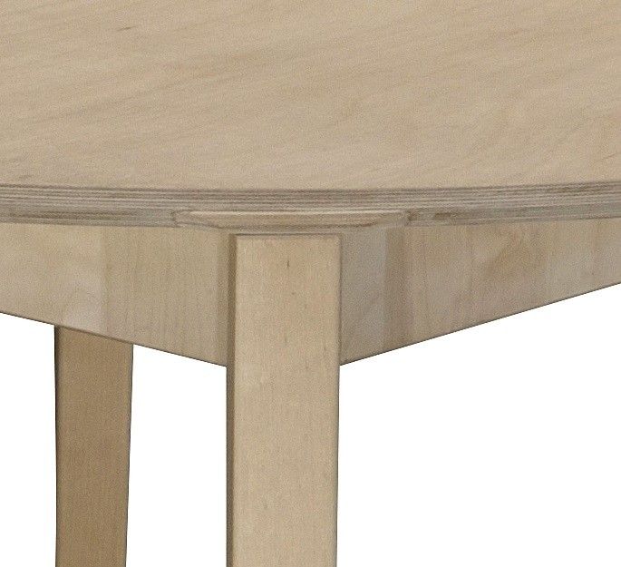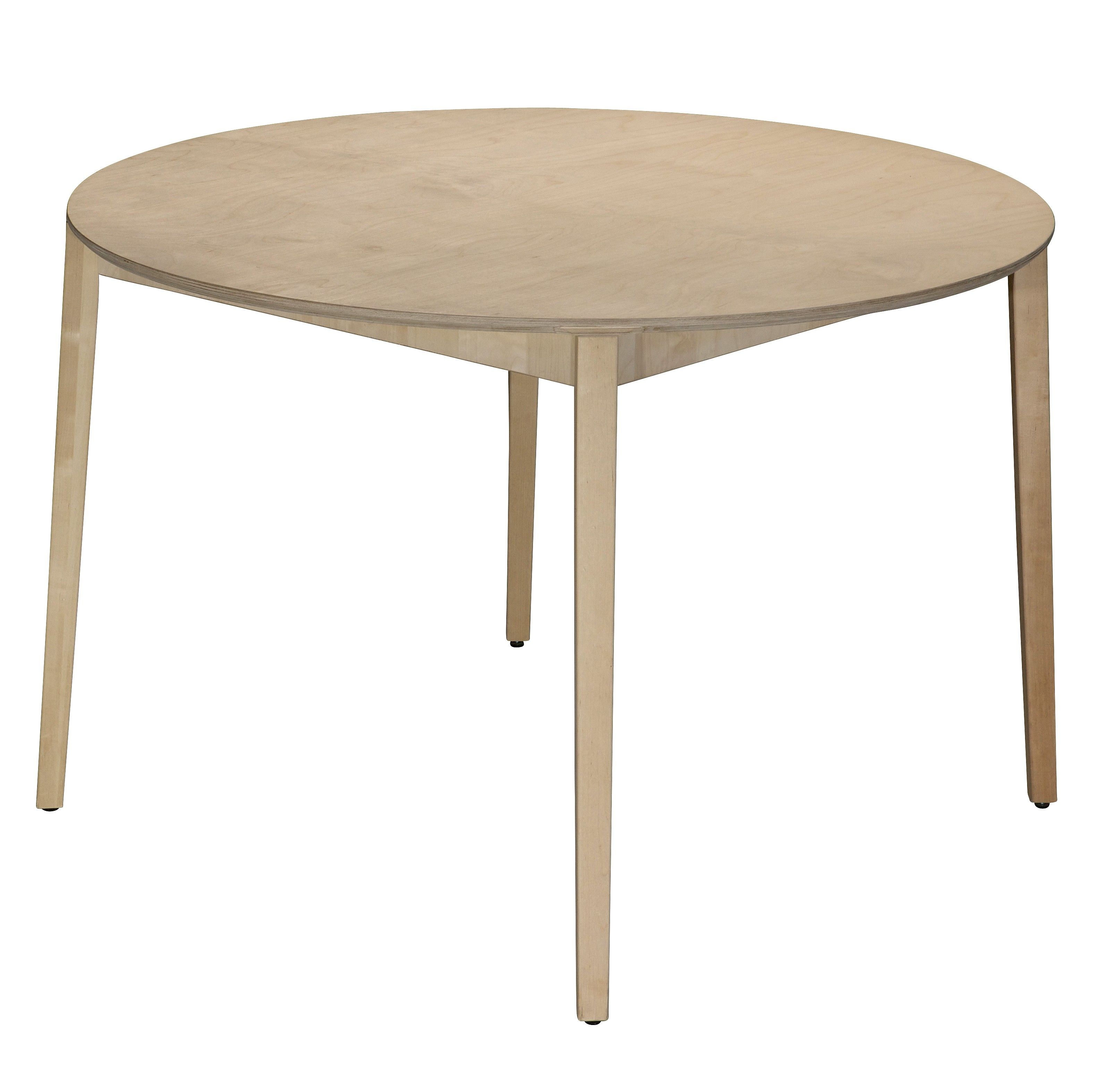 Rundt bord med plade fremstillet i 18 mm. ubehandlet birke krydsfiner. Benene i ubehandlet massiv birk.