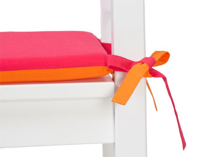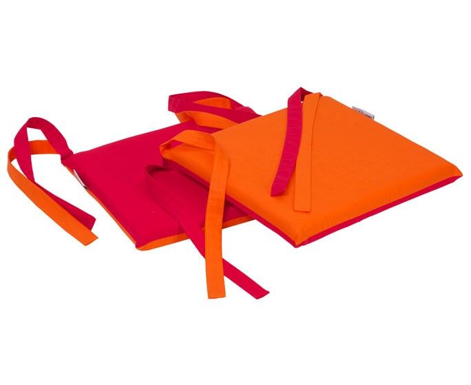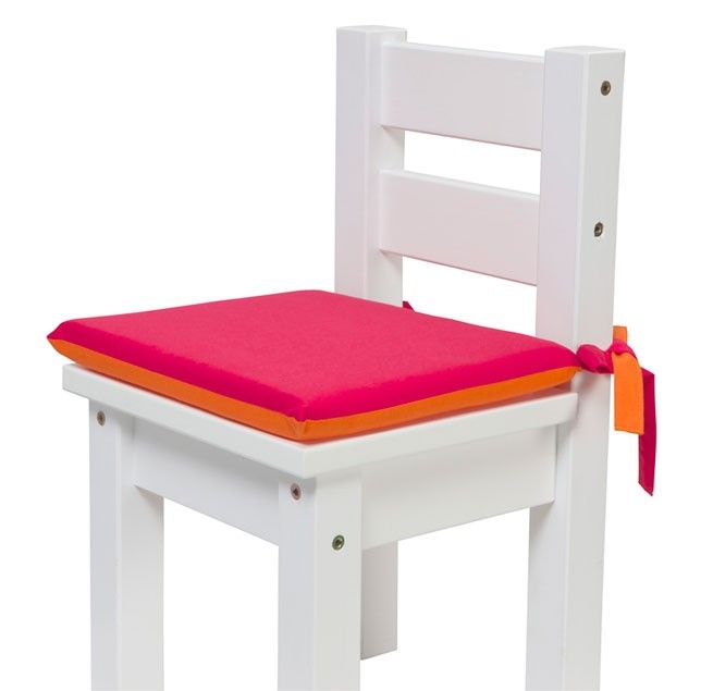 Pudesæt til børnemøbelsæt, 2 puder i pink og orangefarvet.