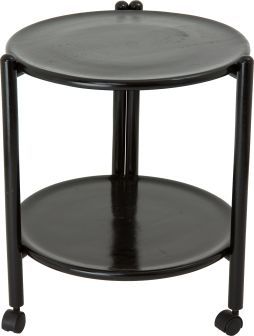 Rullebord i gummitræ med hjul og runde aftagelige indlægsplader. Sortlakeret.