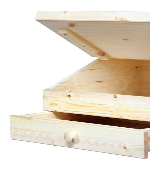 B62 D55 cm. Top til skrivepult med skrå skriveplade og skuffe. Kan vægmonteres (hænges i bagbeklædningen)