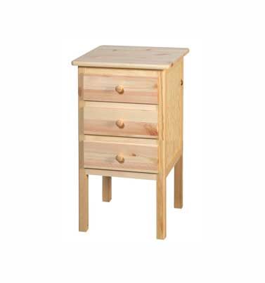 Materialer: hovedsageligt fremstillet i massiv fyr, sider og skuffebunde er fremstillet i krydsfiner.