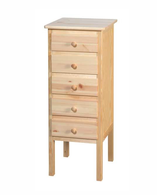 Materialer: hovedsageligt fremstillet i massiv fyr, sider og skuffebunde er fremstillet i krydsfiner.