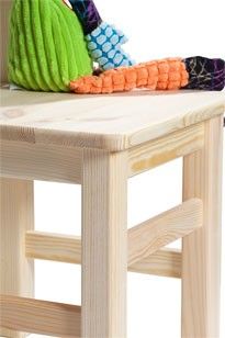 Børnestol fremstillet i massiv ubehandlet fyr. Leveres samlet. Meget flot finish, Dansk håndværk. Kan med fordel sæbebehandles med sæbespåner.