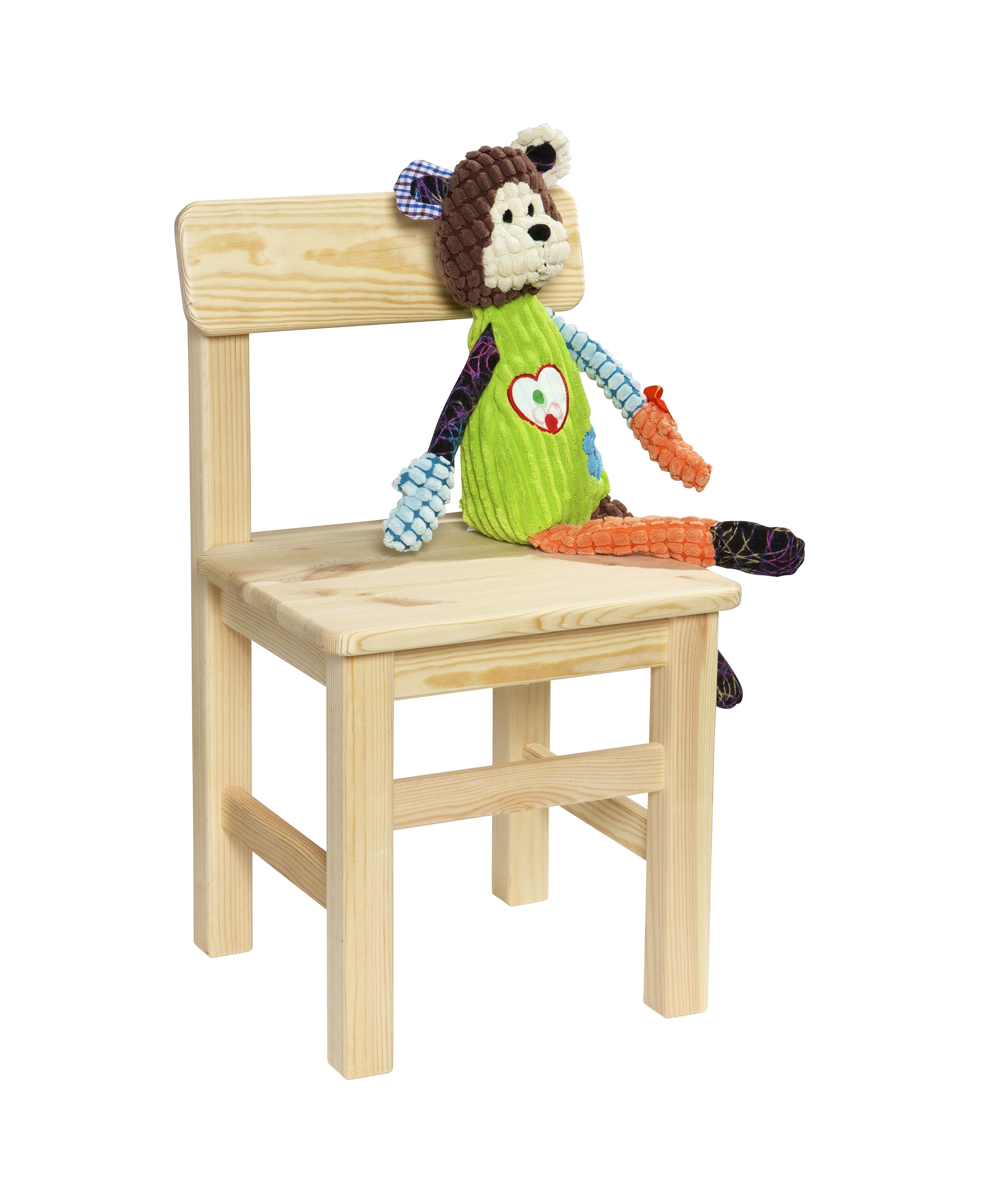 Fremstillet i massiv ubehandlet fyr. Stol med siddehøjde på 30 cm.