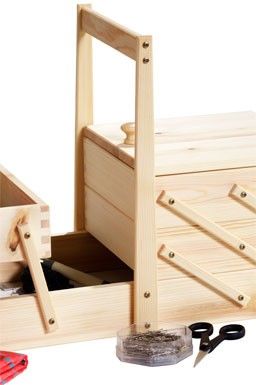 Sykasse i ubehandlet fyr med fem rum. Sykassen kan bruges som opbevaring til mange forskellige småting. Det er muligt at behandle eller male den. Produktet leveres samlet, dog skal der monteres håndtag.