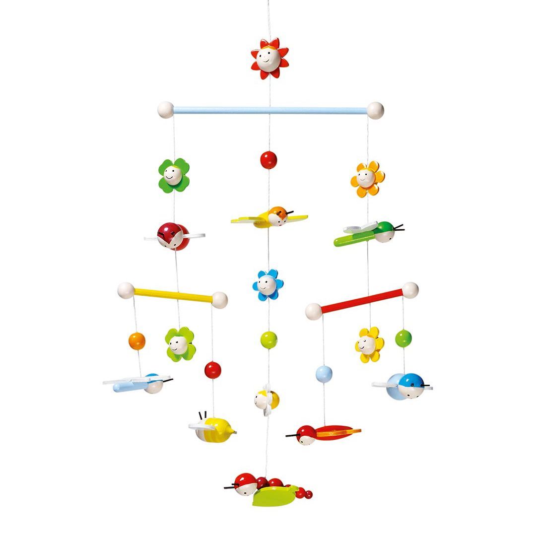 Fin uro i træ med blomster og bier. Masser af sanseindtryk - hæng den eventuelt over en seng eller over puslebordet.