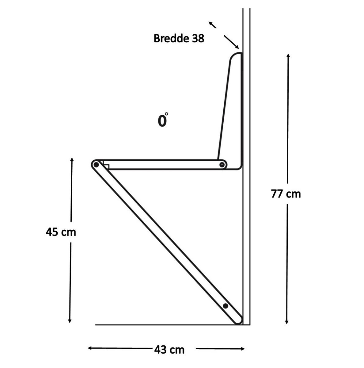 B38 H77 (udslået) og siddehøjde 45 cm.